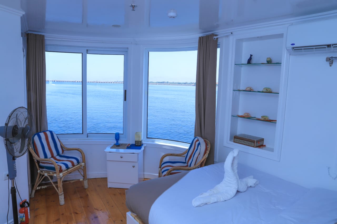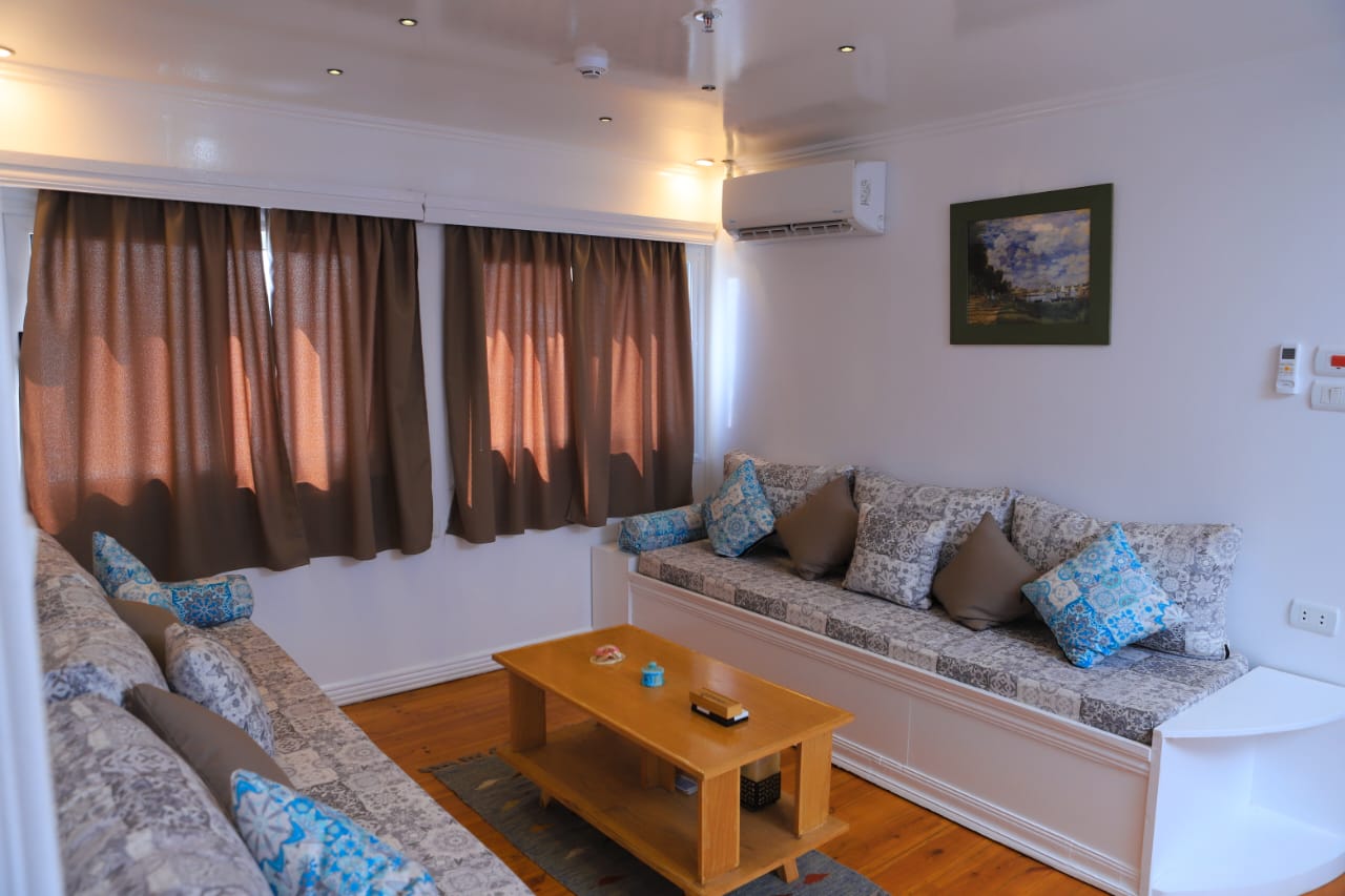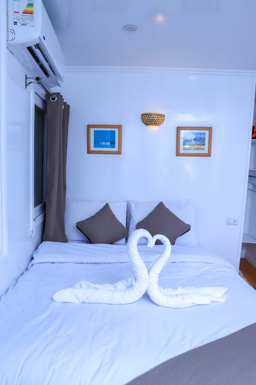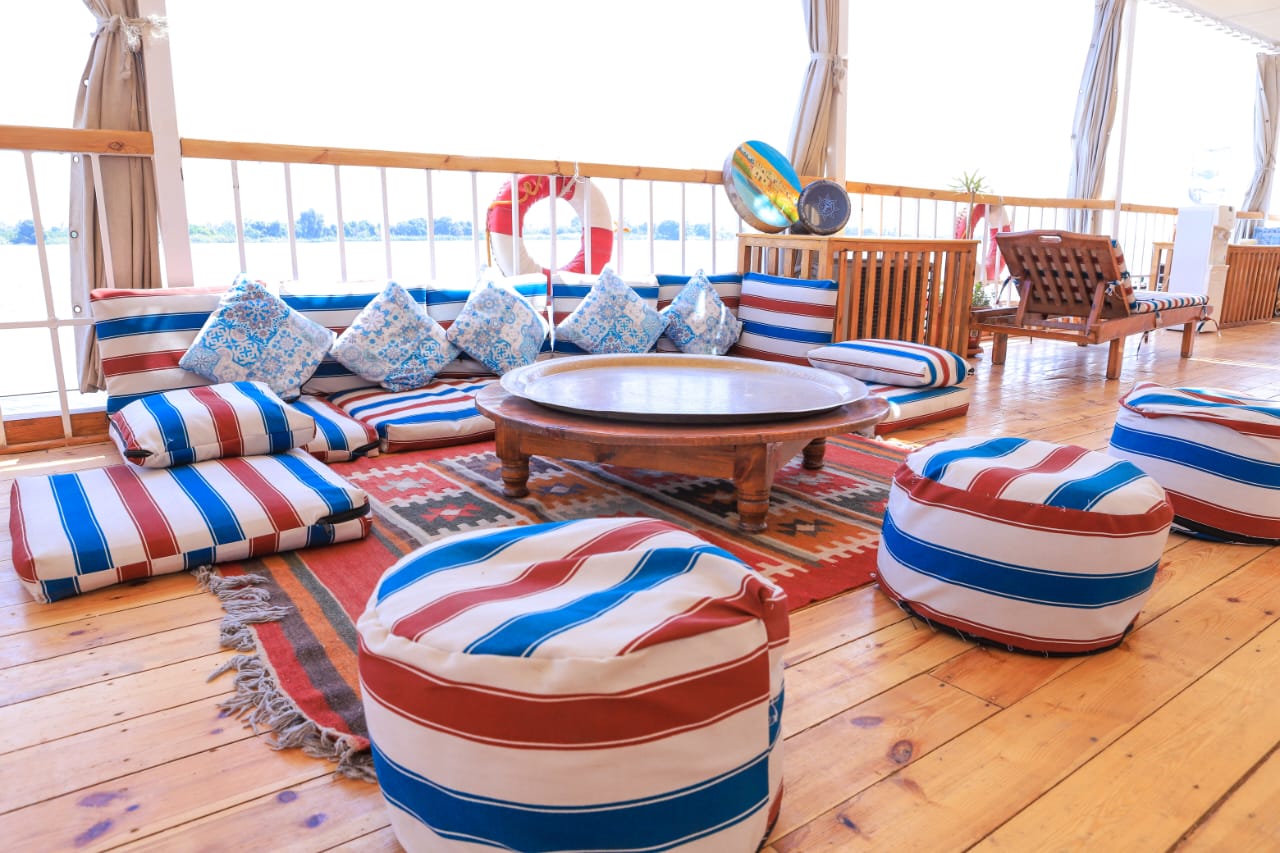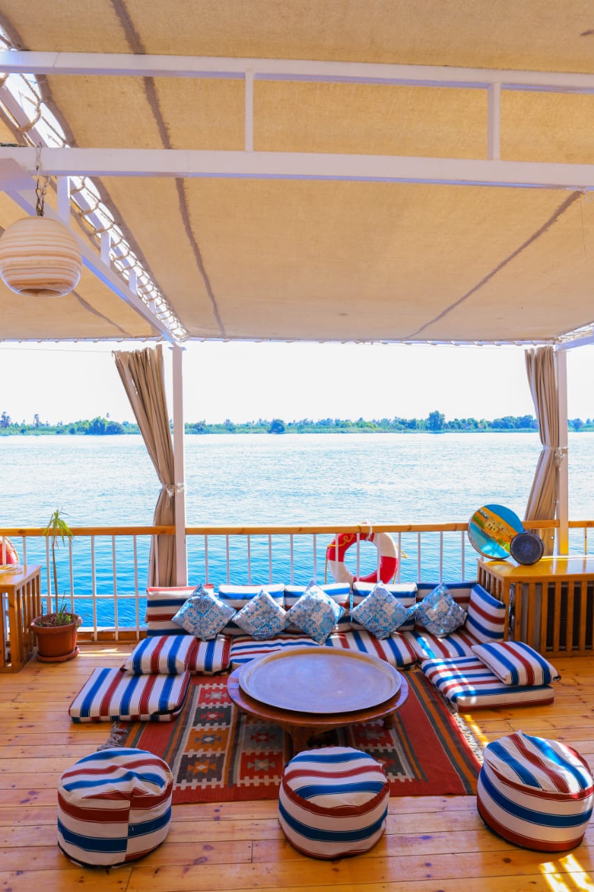 The Dahabiya is a traditional Egyptian boat that has been reimagined to meet modern environmental standards. It operates entirely on solar energy, thanks to advanced solar panel systems installed on board, making it a zero-emission and eco-friendly tourism experience along the Nile River.